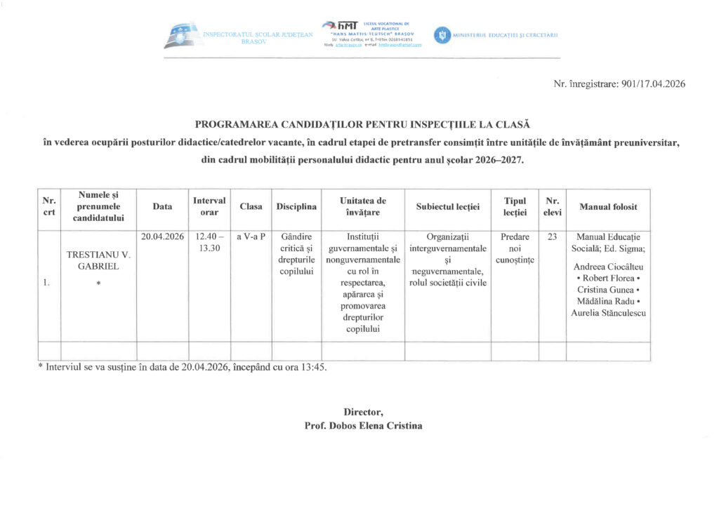 Programarea candidaților pentru inspecțiile la clasă